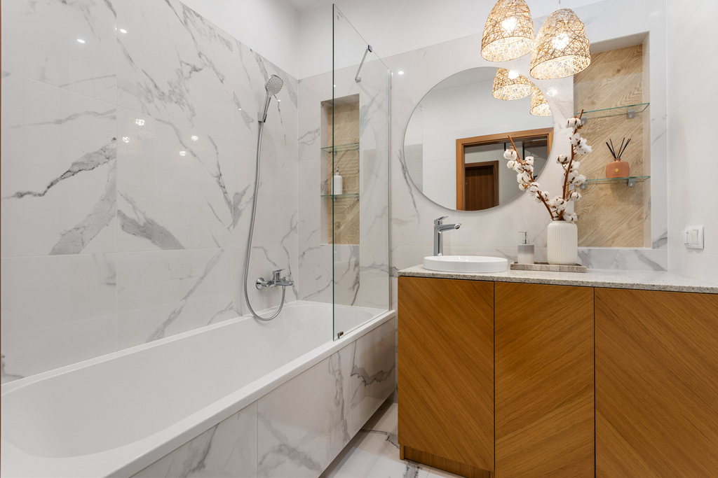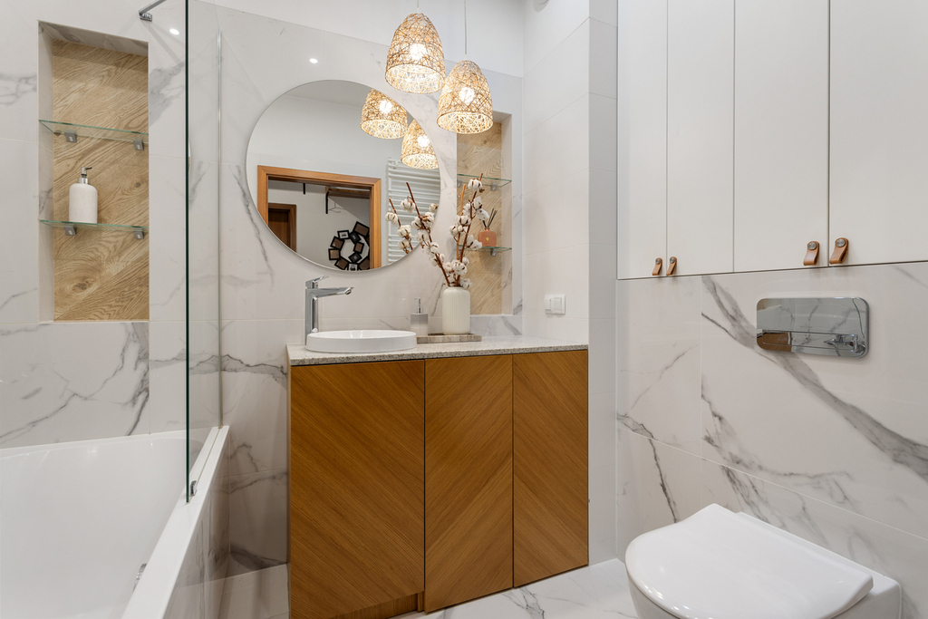 – w łazience granitowy blat.