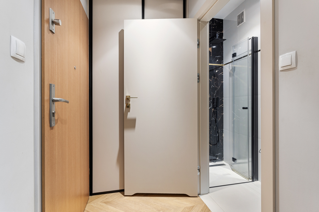 Wnętrze zaprojektowano z dbałością o każdy detal — dominują jasne kolory, wysokiej jakości materiały i przemyślane rozwiązania.
