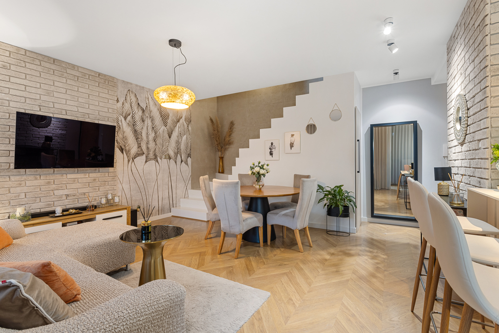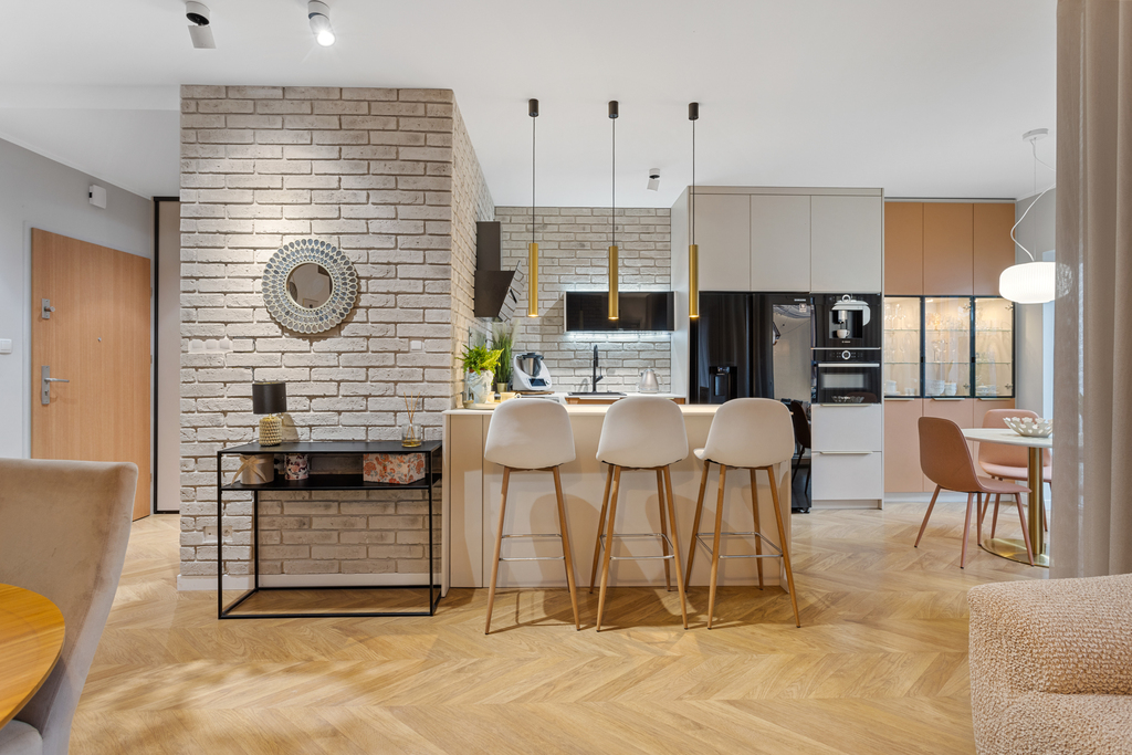 Całość tworzy spójną, elegancką przestrzeń, gotową do wprowadzenia bez dodatkowych nakładów finansowych.