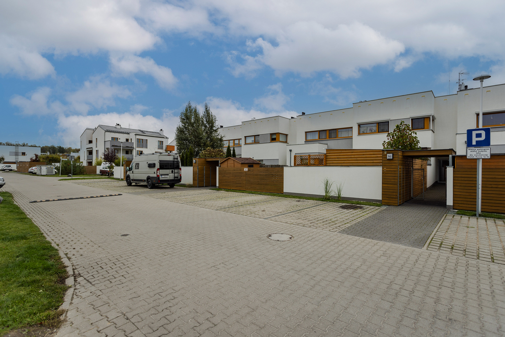 Stylowy, funkcjonalny szeregowiec w wysokim standardzie, położony na nowoczesnym i spokojnym osiedlu w otoczeniu zieleni.