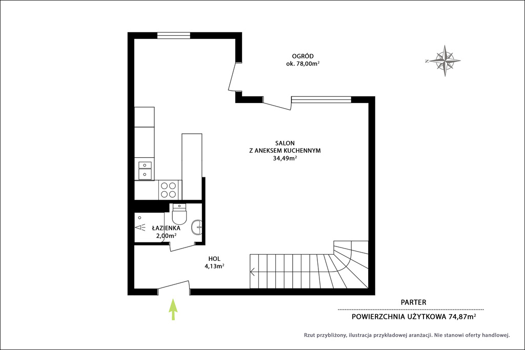 Przestronny salon z aneksem kuchennym – 34,49 m²