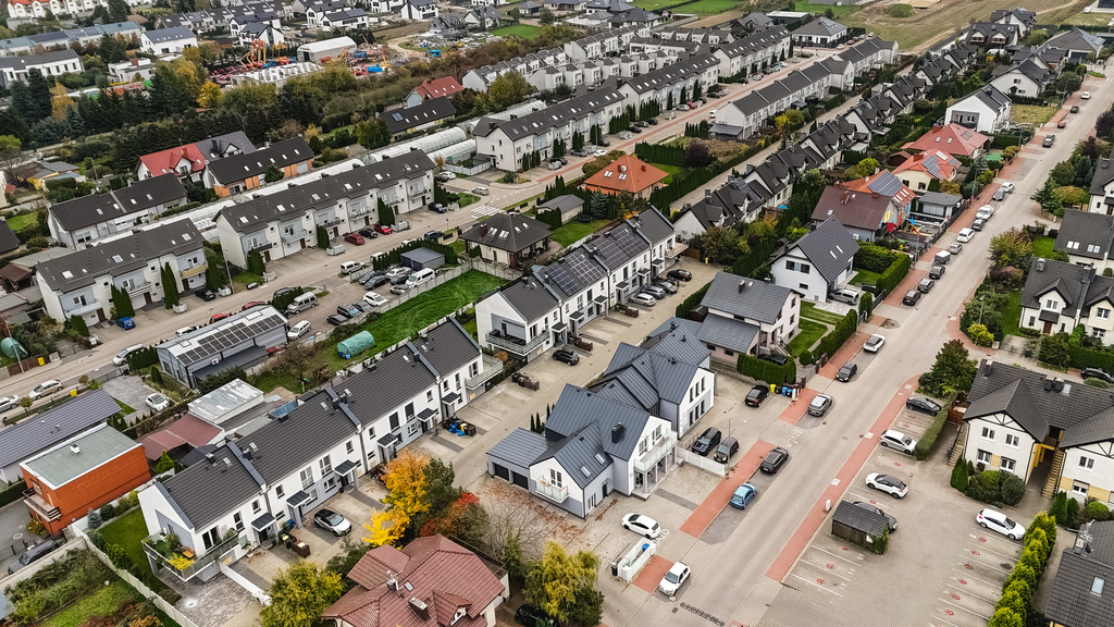 Teren osiedla schludny i zadbany, z niską zabudową szeregową